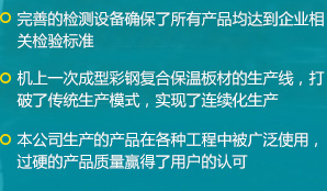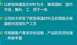 公司是一家瞄準(zhǔn)國(guó)際、國(guó)內(nèi)市場(chǎng),集科、工、貿(mào)于一體的綜合性公司,擁有各類(lèi)先進(jìn)的設(shè)備100余臺(tái)(套),公司自主研發(fā)了新型保溫材料及彩鋼復(fù)合保溫板材連續(xù)生產(chǎn)工藝,建成了機(jī)上一次成型彩鋼復(fù)合保溫板材的生產(chǎn)線(xiàn)...